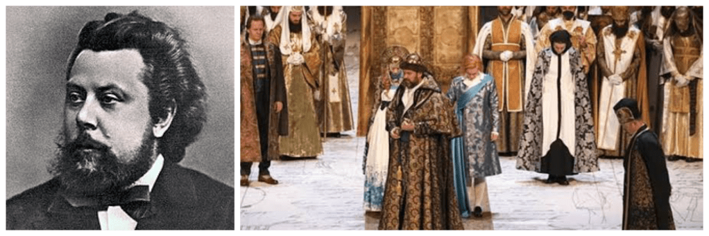 In 1863, a shortage of funds forced Mussorgsky to take a job as a clerk in the civil service. Though brimful of startlingly original ideas, the pieces he composed in his spare time often lacked any musical logic and he abandoned many works out of sheer frustration. Indeed, if it hadn’t been for Rimsky-Korsakov’s later kindness and support, Mussorgsky, and his music, might have fallen by the wayside.Throughout the 1870s, Mussorgsky became increasingly prone to epileptic seizures, and his predilection for alcohol quickly developed into full-blown dependency. Boris Godunov (1552– 1605) was the de facto regent of Russia from 1585 to 1598 and then tsar from 1598 to 1605 following the death of Feodor I, the last of the Rurik dynasty.