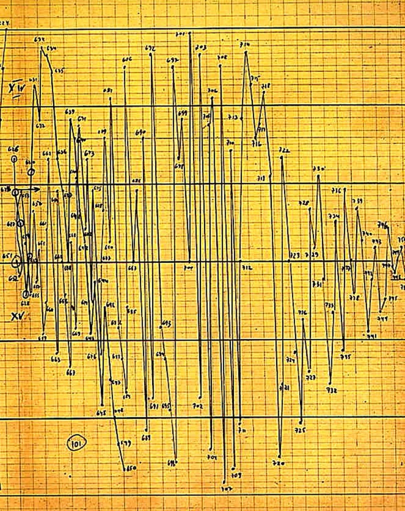 At the same time, Iannis Xenakis used mathematics in his compositions. In Achorripsis (1957), he applied probability theory (called stochastic processes) to decide pitch, duration, density, and overall structure. Though the piece is a fixed score (not free-form or improvised), its statistical design gives each performance a uniquely structured sound. Later, in 1977–1978, Xenakis created the UPIC system, which let composers draw sound waves and shapes on a screen and turn them directly into electronic music.